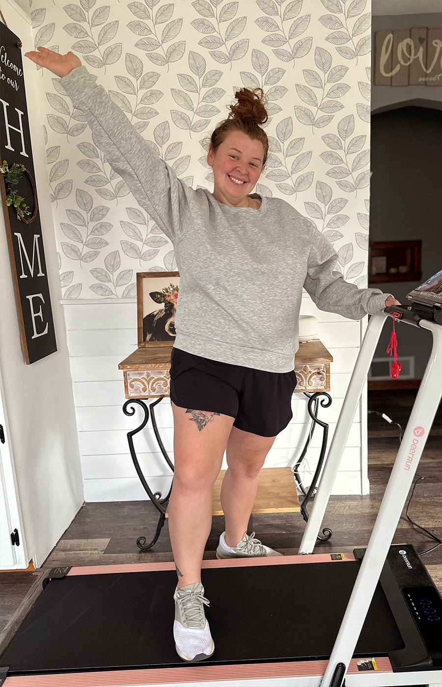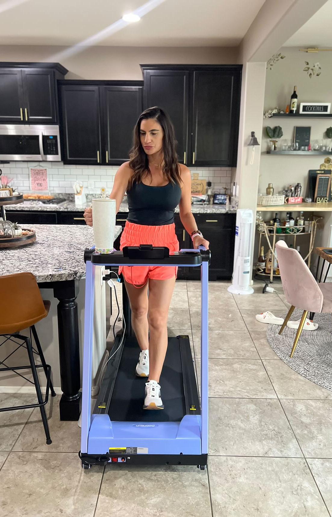 This treadmill is perfect for a small home gym! Ready to go out of the box! There is plenty of room for walking or jogging. The incline function is very simple, and I actually like that it’s manual. It runs quietly. The speed controls are great. The display scrolls through speed, time, distance, and calories burned. Also like that there’s no large display screen attached to the front console, making it easy to watch tv or your phone/tablet that can be placed on the convenient attachment. When you’re done, it folds up easily!
