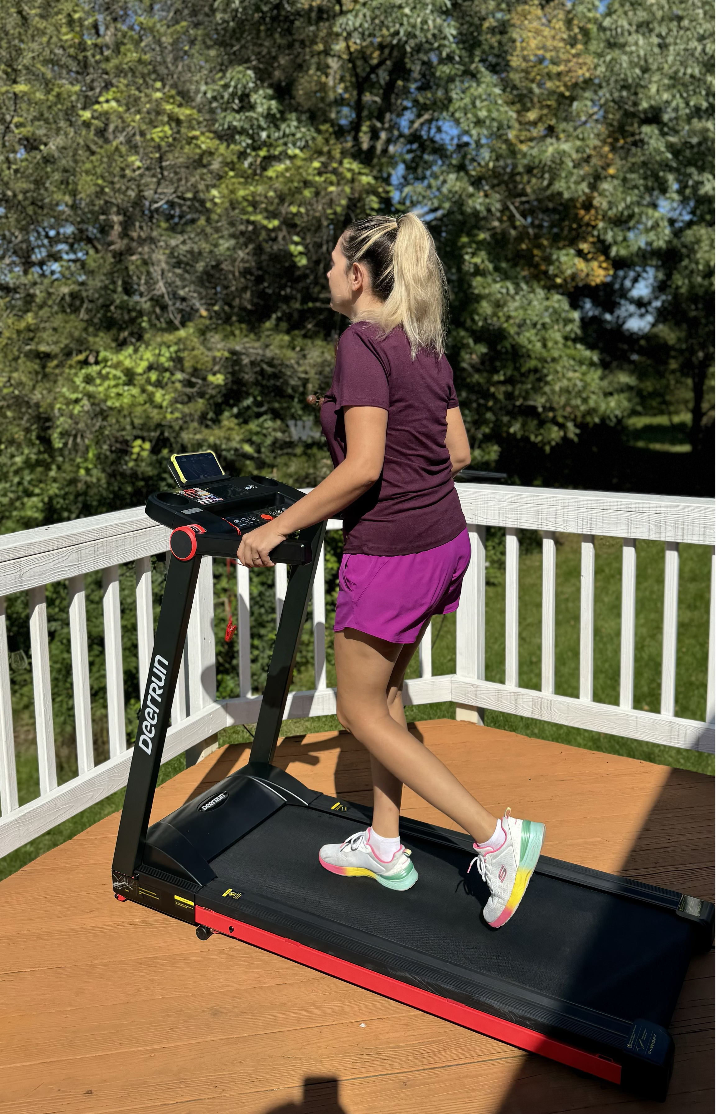 The DeerRun walkingpad has a compact design and can easily fit under your desk, so you can work and exercise at the same time.
