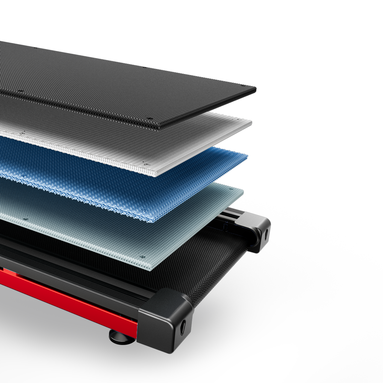 The A1 Pro foldable smart treadmill's five-layer belt contours to your foot, offering comfort, durability, and noise reduction for a smooth, joint-friendly workout.