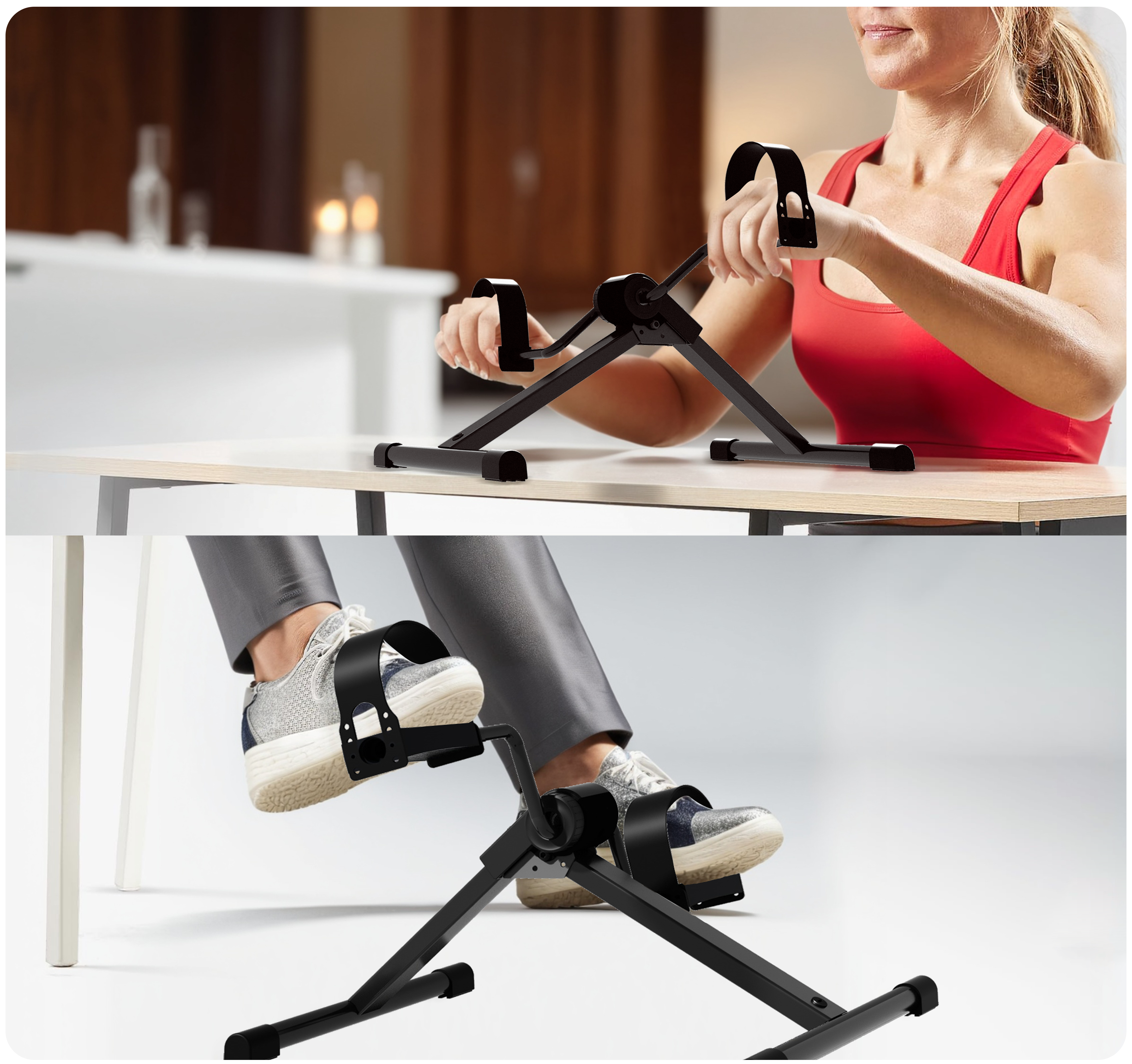【UNDER-DESK EXERCISE EQUIPMENT FOR HOME WORKOUTS】: Stay active while working or watching TV with this compact foot pedal exerciser. It fits neatly under a table, allowing you to burn calories and stay fit. When not in use, simply fold it up for easy storage.